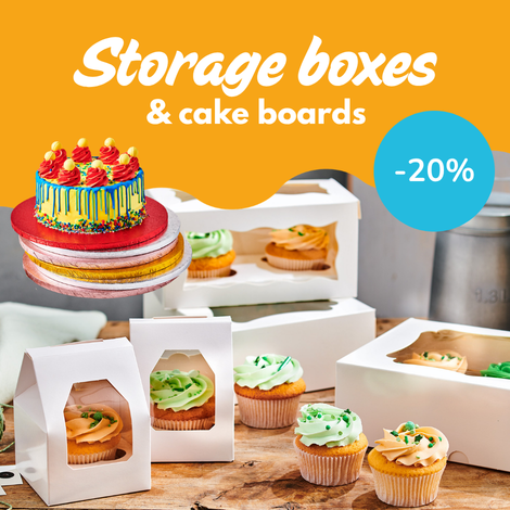 Is your homemade treat ready and do you want to be able to store it properly, deliver it safely or perhaps give it as a gift? Then take a look at our presentation items and packaging: from cake boxes and treat packaging to cake boards and cake stands, here you will find everything for the beautiful presentation and packaging of your baked goods. And we have even thought of everything for decorating your party, because Deleukstetaartenshop also has no shortage of party decorations!