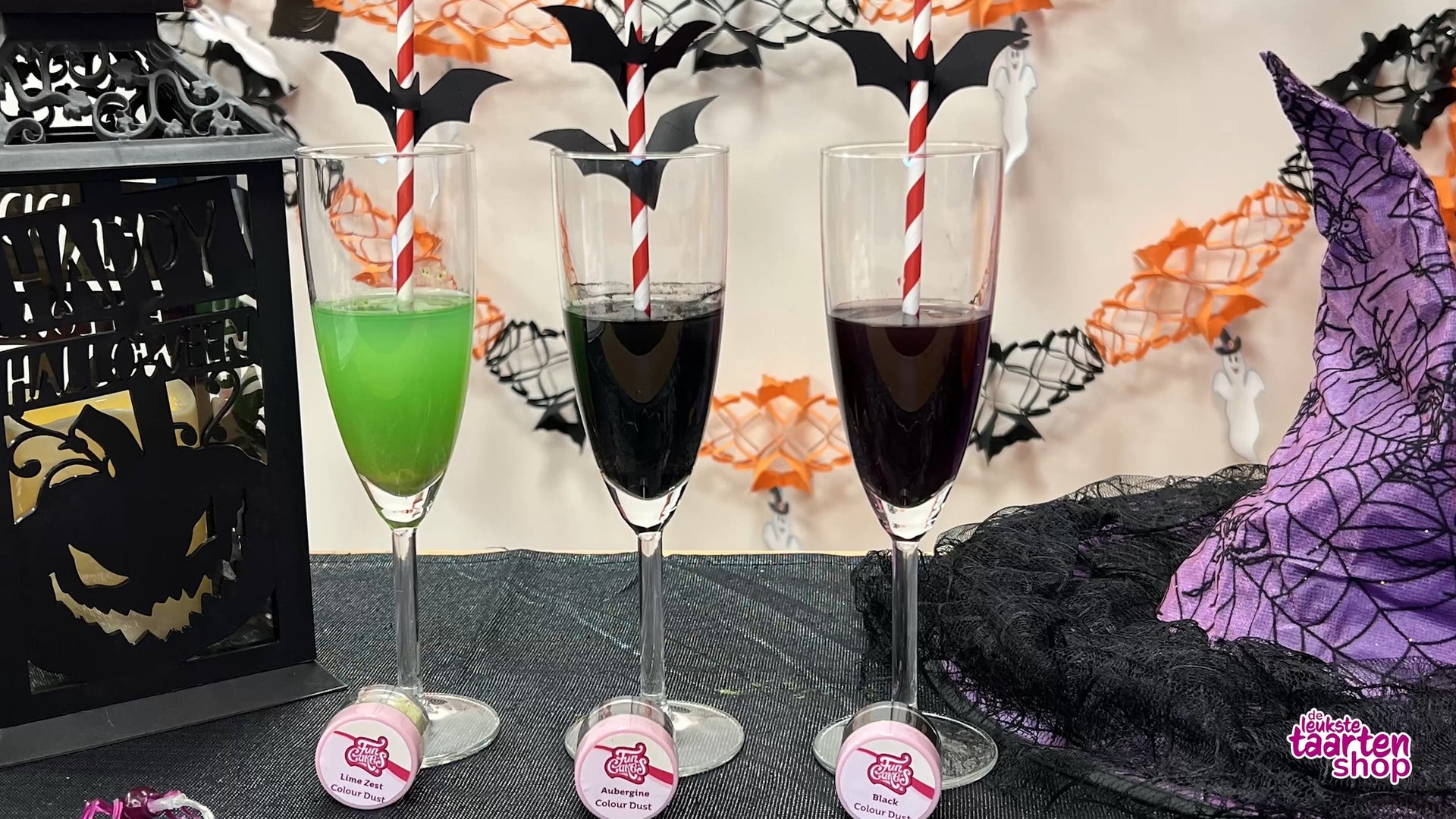 Make this creepy colored prosecco for Halloween. Easily color your drinks yourself to brew spooky, spooktacular drinks for your Halloween party! With colored drinks, you can make it extra festive.