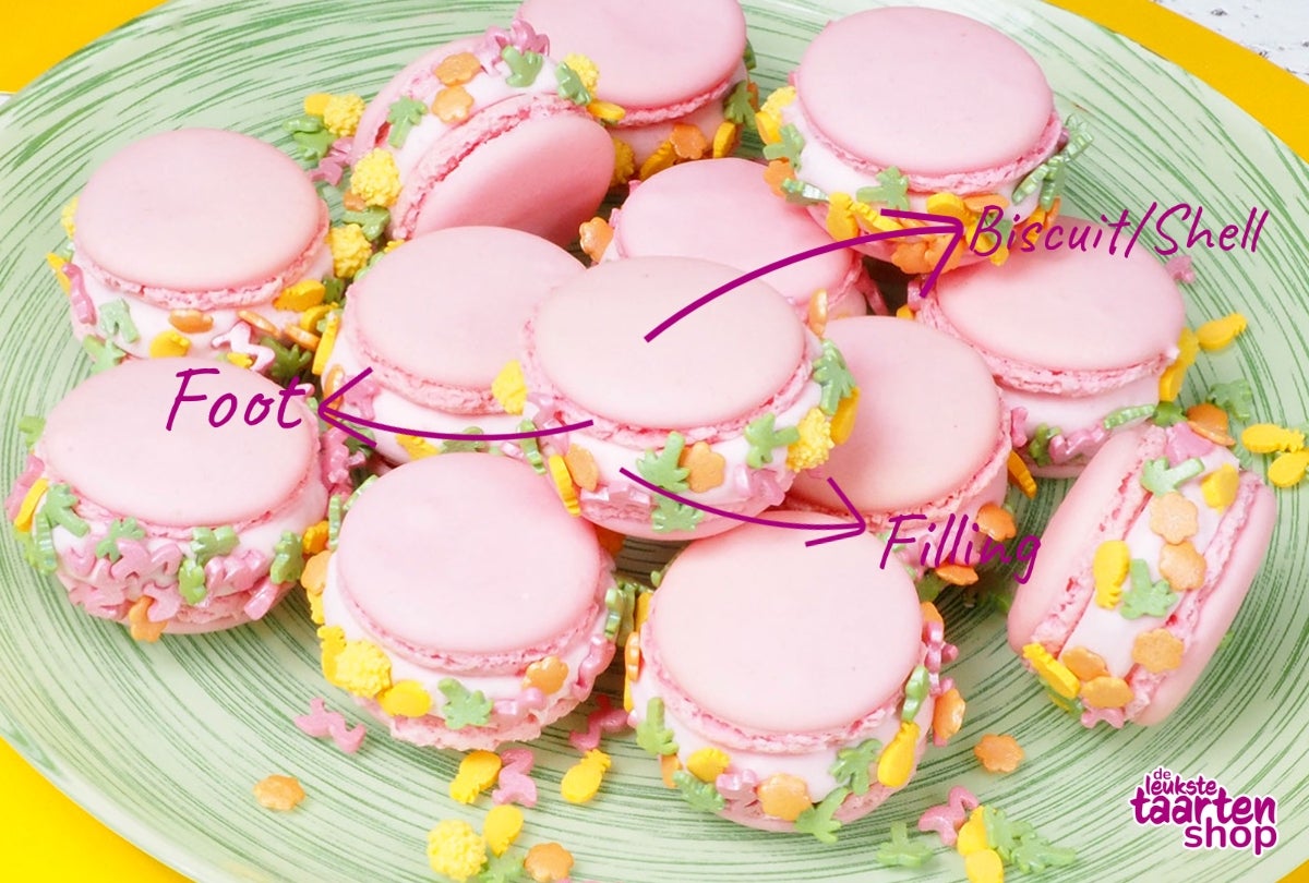 Do your shells have a foot but are broken? Then there are too many air bubbles in your batter. To avoid broken shells, it is very important to remove all air bubbles before the macarons go into the oven. You can do this by tapping the baking tray on the counter a few seconds before the macarons go into the oven.