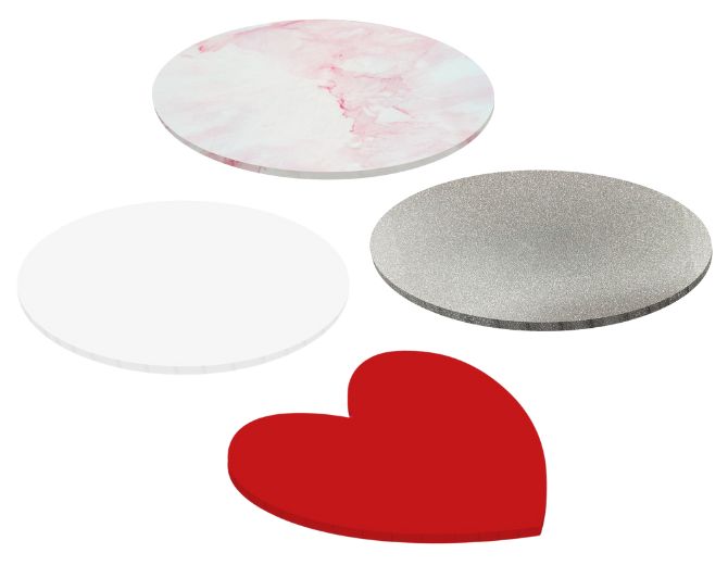 In addition to the standard white version, there are also gold and silver cake cards. These have a grease-resistant coating to prevent stains. They’re also slightly thicker and sturdier, making them suitable even for small tiered cakes. The white cake cards are not suitable for that purpose.