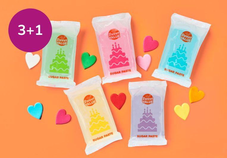 Want to get started with fondant at a great price? With Sweet Value, you choose affordable, no-nonsense products that make baking simple and fun. From 23 January to 29 January, take advantage of our Sweet Value introductory offer: 3+1 free, giving you even better value.
